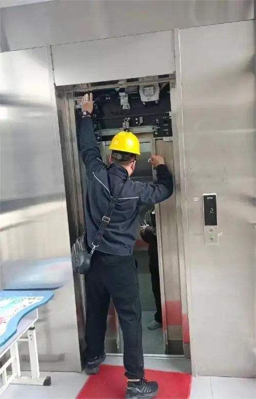 施工人員調試加裝電梯。