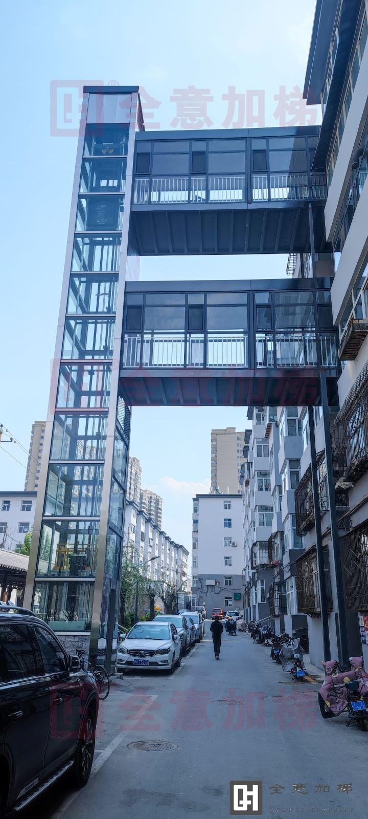 金屬小區位于杏花嶺區五一路金倉巷,已建成交付使用電梯一部,采用長連廊半層入戶設計,透明玻璃,兩道連廊。