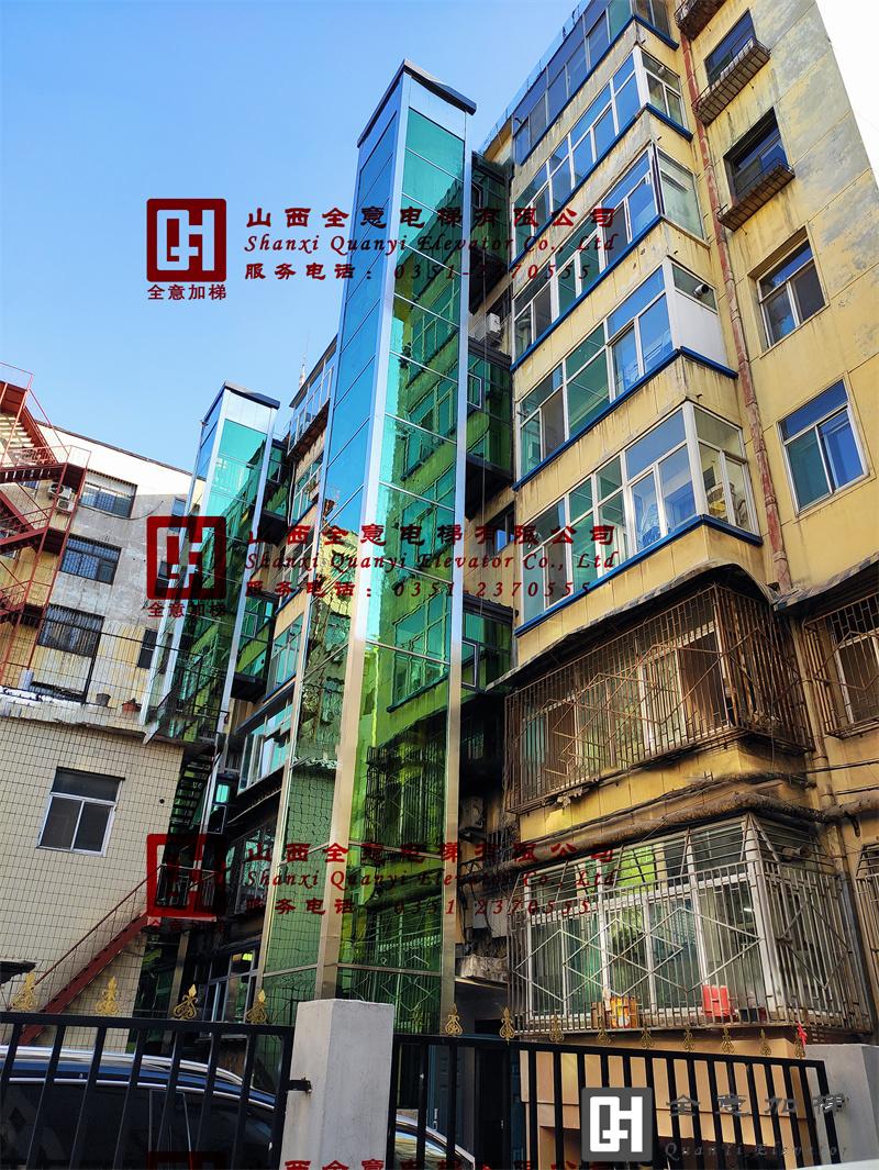 桃園路39號(hào)院采用半層入戶方式,兩個(gè)單元同時(shí)加裝,1.5米連廊,綠色鍍膜玻璃。
